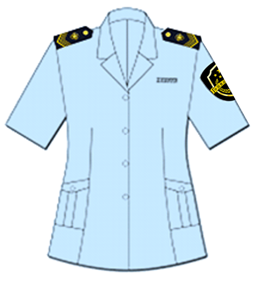 說明:襯衫為滌棉混紡面料,顏色為深藍色,短袖襯衫為小翻領(lǐng),單排四粒扣,兩個明口袋。長袖襯衫為豎領(lǐng),單排五???,兩個明口袋;西服簡褲或裙子為毛滌混紡面料。